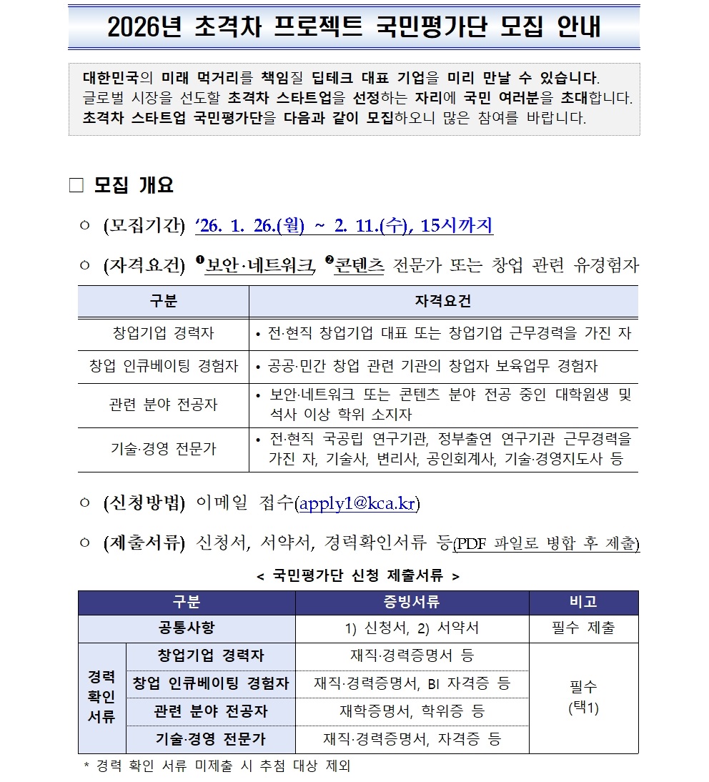 [공통] 2026년 초격차 스타트업 프로젝트 국민평가단 모집